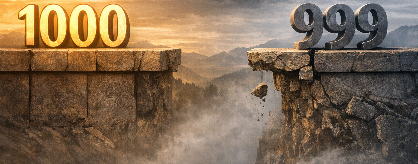 Nine hundred and ninety-nine looks complete. It looks powerful. It looks nearly indistinguishable from one thousand. To the careless eye, it is “close enough.” To the impatient mind, it is “almost there.” And to the complacent conscience, it is “good enough.”