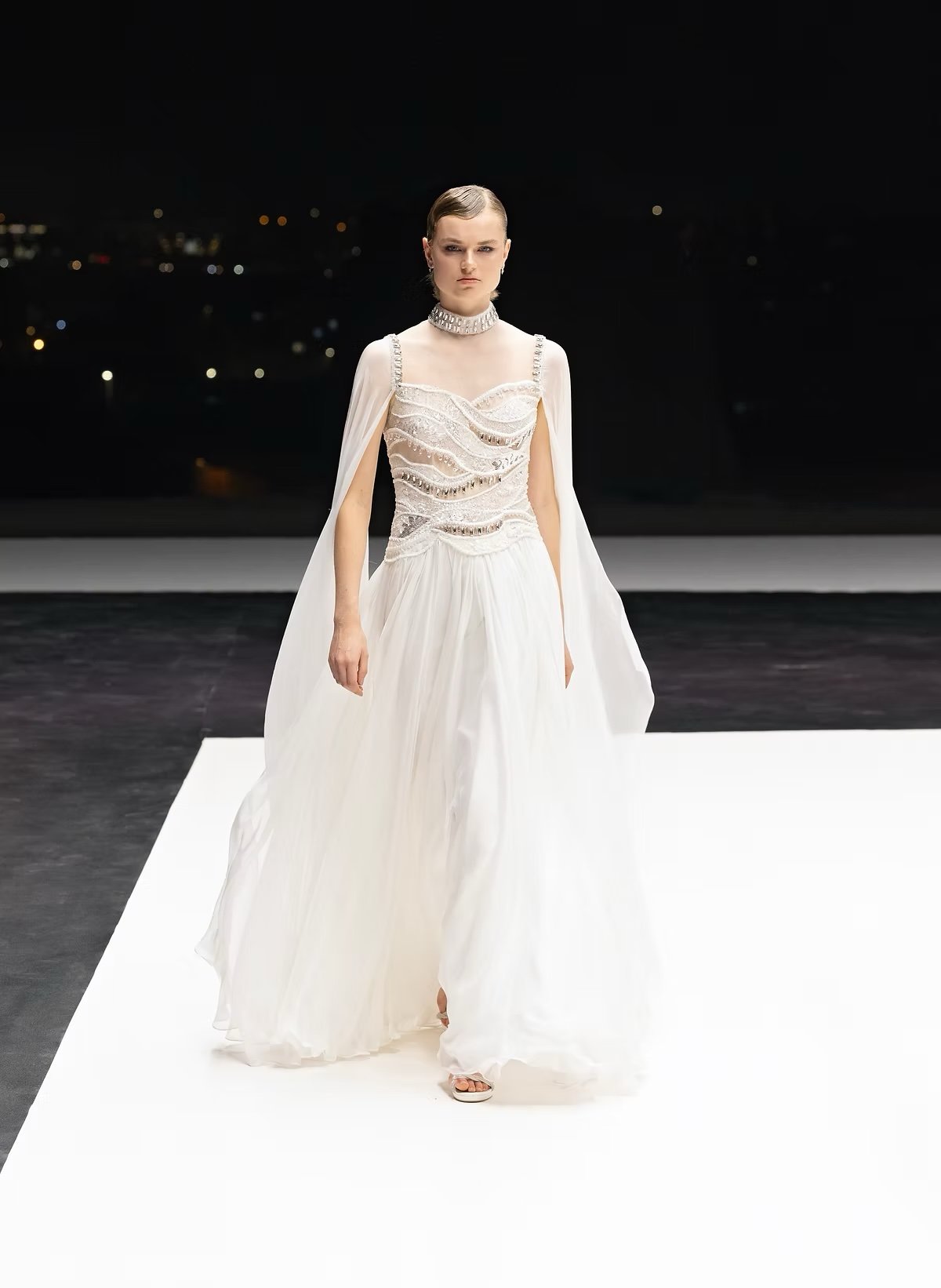Arguably the highlight of the event, the Vivienne Westwood label will be opening Riyadh Fashion Week with a collaboration between the label and Saudi Arabia’s Art of Heritage Program. The exclusive pieces in this collection of gowns will contain a combination of their Spring/Summer 2026 line with curated archival Vivienne Westwood pieces, a love letter to local Saudi craftsmanship and art. Vivienne Westwood herself was known for her rebellion, bringing punk into the British luxury fashion market with her trademark boxy corsets, tartan, draping, and the political messaging she brought to the runway. Her art went beyond the materialistic, something which can be felt in her wake in the anticipation of this collection, one that fosters cultural connection and brings change to traditional mindsets.
