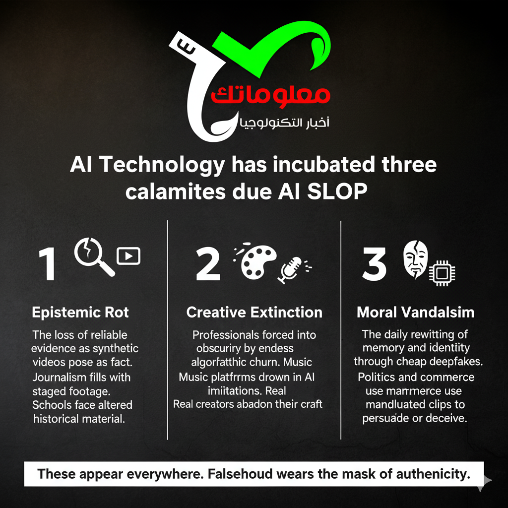 Technology has already seeded at least three calamities; First, epistemic rot: the loss of reliable evidence as synthetic clips circulate as fact. Second, creative extinction: skilled professionals forced into invisibility by algorithmic churn. Third, moral vandalism: the everyday rewriting of memory and identity through cheap deepfakes. These are visible across fields. Journalism faces fake eyewitness videos. Music platforms overflow with imitations of real artists. Education risks teaching altered history. Political feeds run on manipulated clips. Advertising exploits cloned faces for false endorsements. The harm compounds because falsehood now looks authentic while genuine creators are buried beneath limitless replicas.