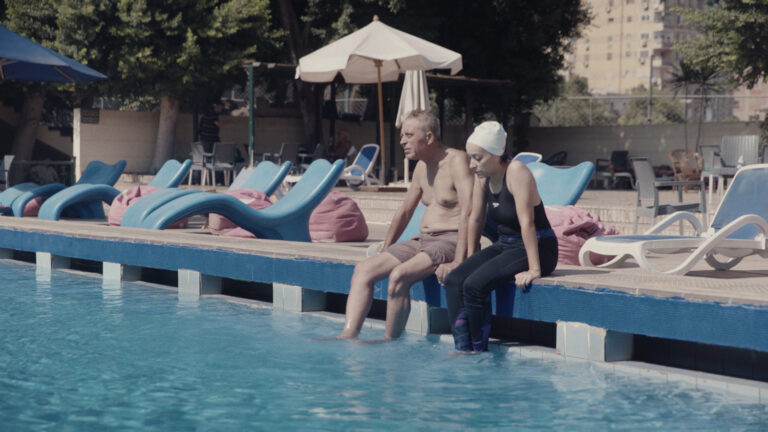 Taking place entirely in a Cairo community swimming pool, through this documentary-style film, Khattab portrays a tenuous father-daughter relationship. Premiering internationally at CPH:DOX, Khattab features her own father in the film in an attempt to become closer to him. While the physical distance between the two is small, they may as well be emotional worlds apart. Their relationship, on a greater and individual scale, is shaped by culture, society, and the patriarchy. These are elements of everyday life, things that integrate themselves into years of family dynamics and rituals. As they discuss mortality, loneliness, and parenthood, and reflect on their relationship, the two attempt to bridge the gap between them.